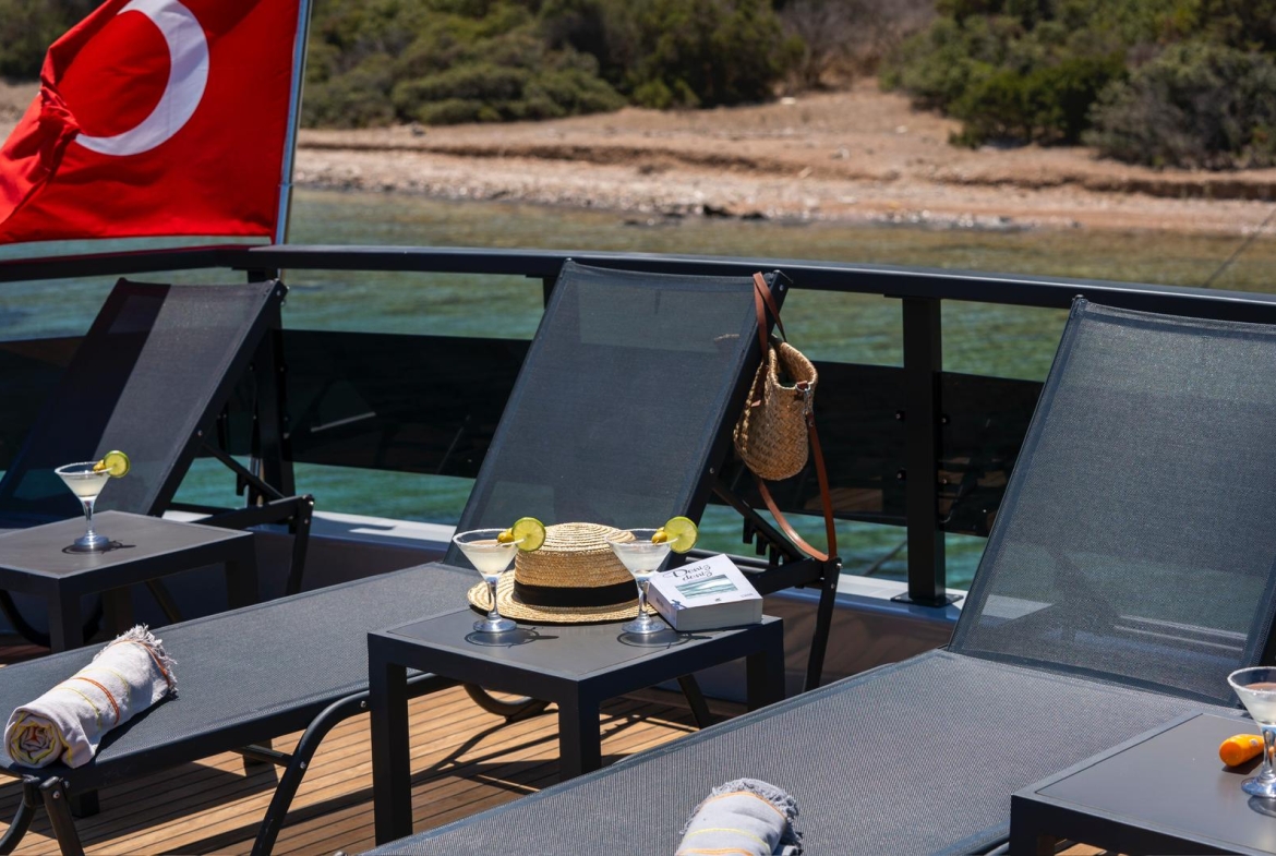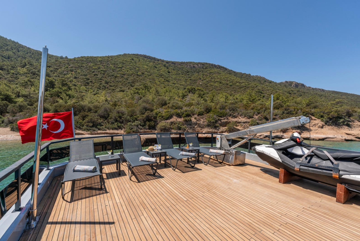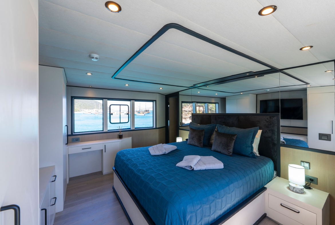 Among them, two master cabins, two VIP double cabins, Two double cabin all equipped with 24-hour air conditioning, ensuring a delightful and comfortable stay on board. During your exquisite blue cruise, indulge in an array of water sports facilities that promise excitement and fun. Whether you prefer snorkeling, jet skiing, or any other water activity, “Calm Down” has you covered, ensuring an unforgettable journey filled with adventure. Setting sail from picturesque ports such as Bodrum, Marmaris, Göcek, or Fethiye, you have the opportunity to explore the breathtaking bays and mesmerizing coastlines of the Mugla province.