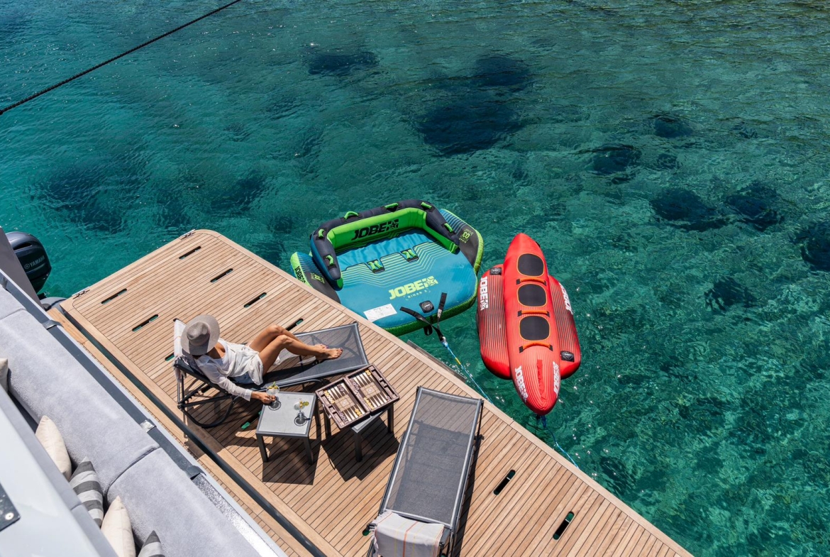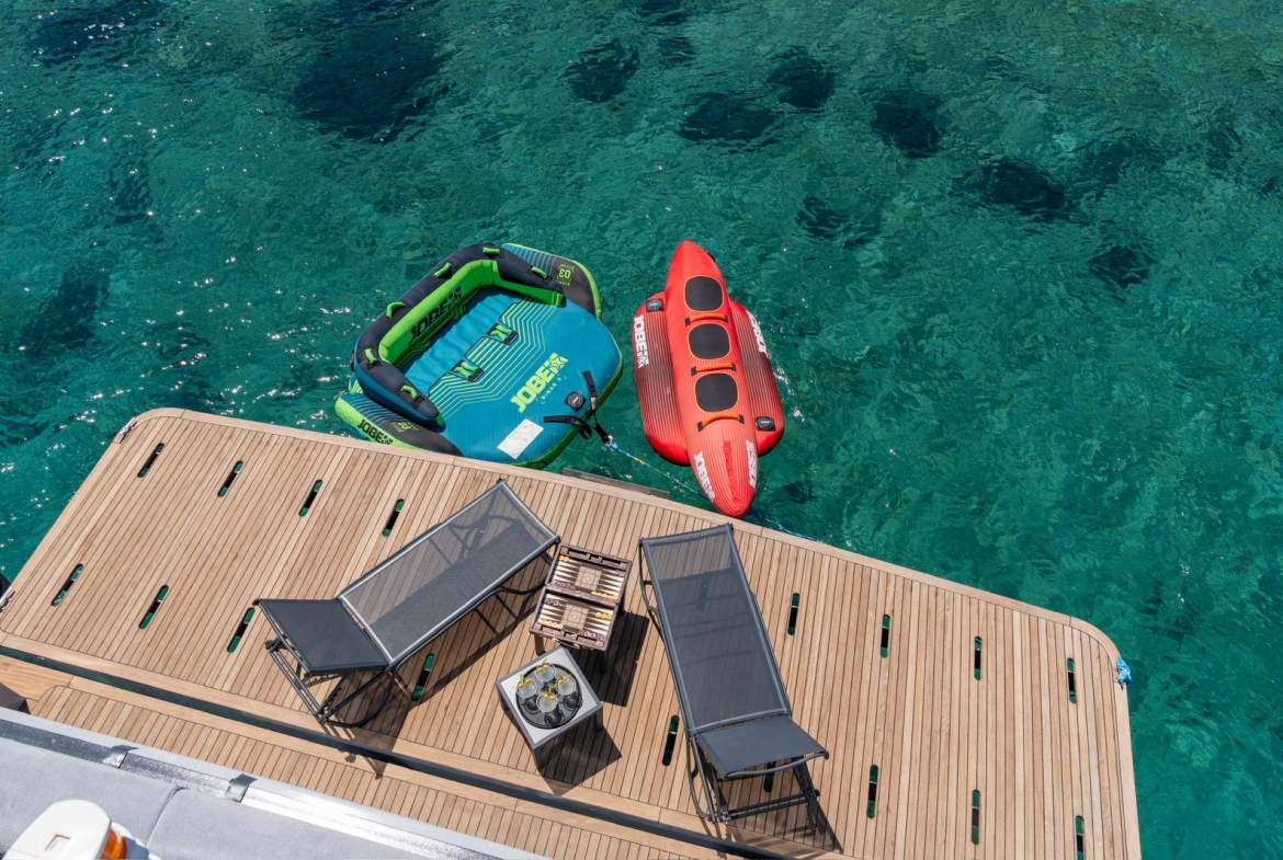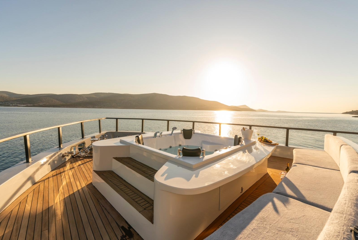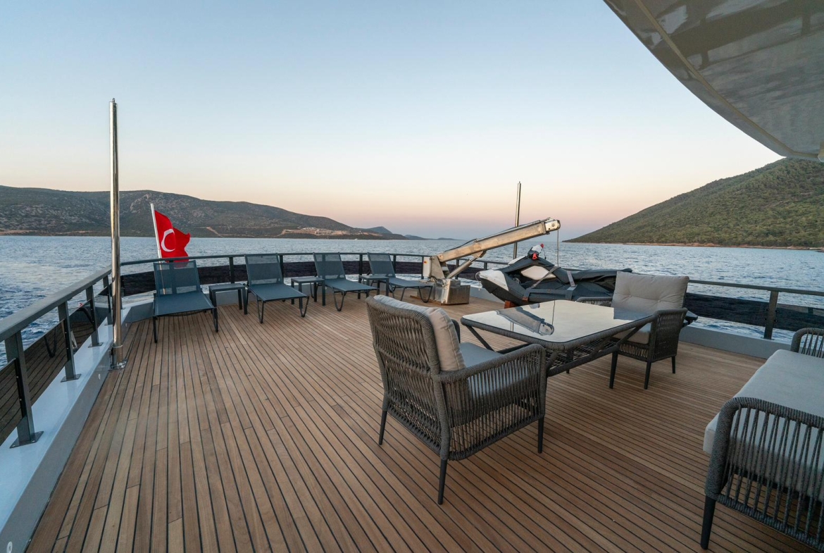 Among them, two master cabins, two VIP double cabins, Two double cabin all equipped with 24-hour air conditioning, ensuring a delightful and comfortable stay on board. During your exquisite blue cruise, indulge in an array of water sports facilities that promise excitement and fun. Whether you prefer snorkeling, jet skiing, or any other water activity, “Calm Down” has you covered, ensuring an unforgettable journey filled with adventure. Setting sail from picturesque ports such as Bodrum, Marmaris, Göcek, or Fethiye, you have the opportunity to explore the breathtaking bays and mesmerizing coastlines of the Mugla province.