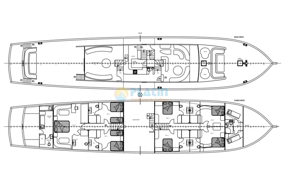 Cabin/bed/type 1 Master, 4 VIP double, 2 Twin
