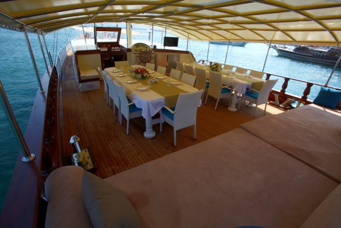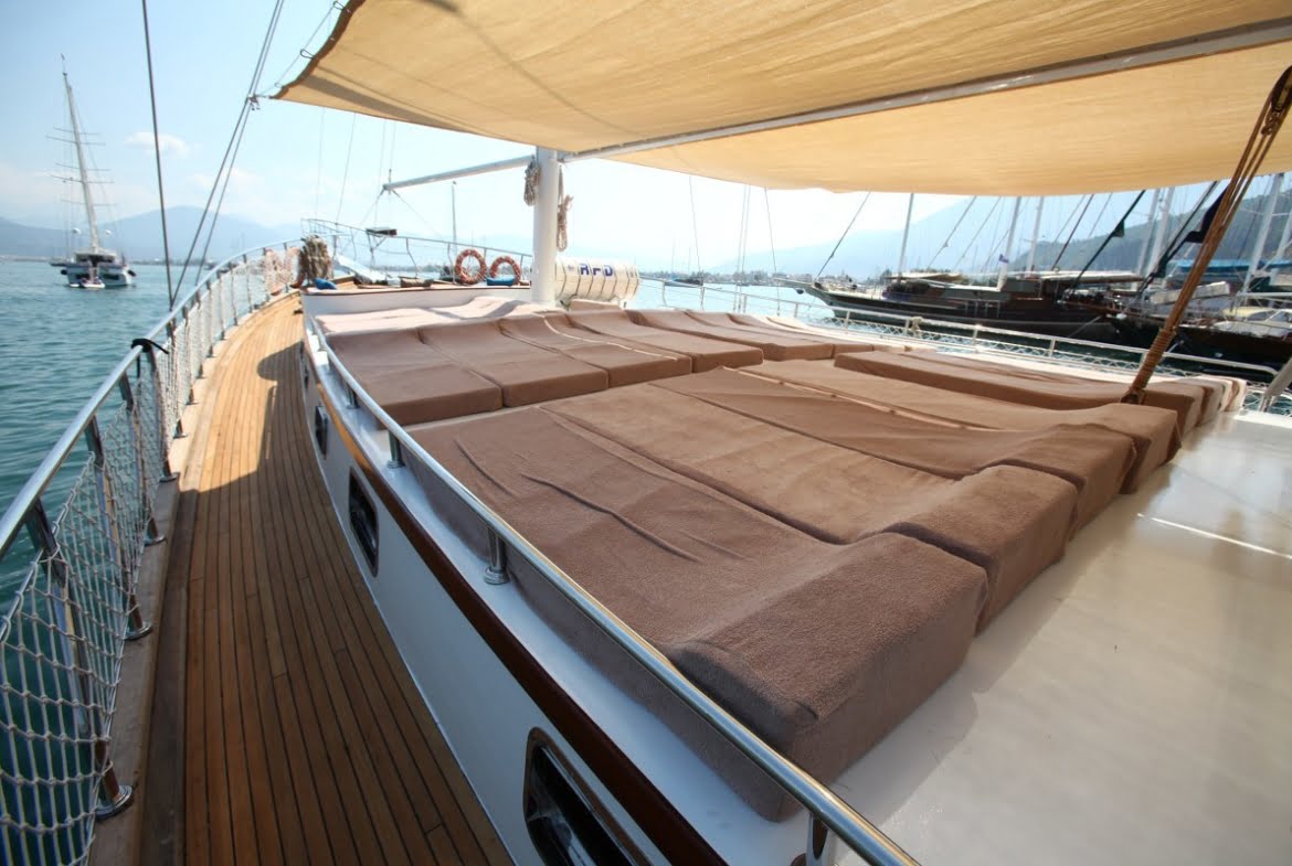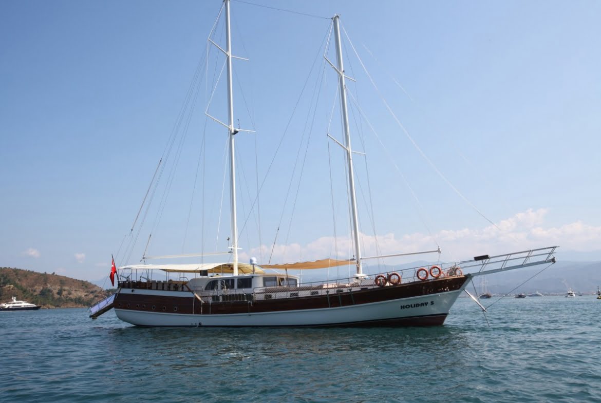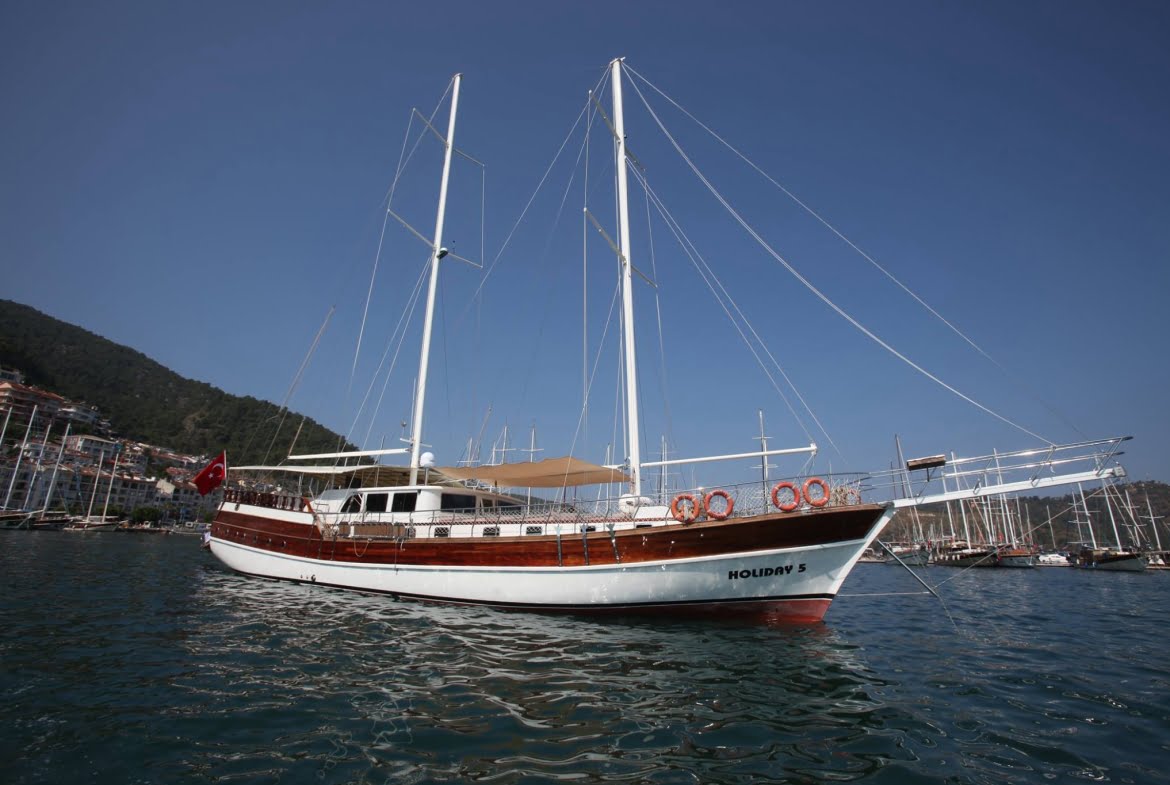 Holiday 5 Gulet has 10 cabins and a capacity up to 20 persons. She is especially designed for large groups. Holiday V Yacht.Holiday V has been completely refurbished in year 2015, she has 10 cabins and is comparing to other gullets in a reasonable price she is ideal for our guests that are planning a blue cruise. She is designed with a capacity to accommodate up to 20 persons in the most beautiful bays of the Mediterranean. On board you are accompanied with an experienced and friendly crew. Our gulet provides you a high class service in a reasonable price at the same time you can do cabin charters with her. Holiday V Yacht.