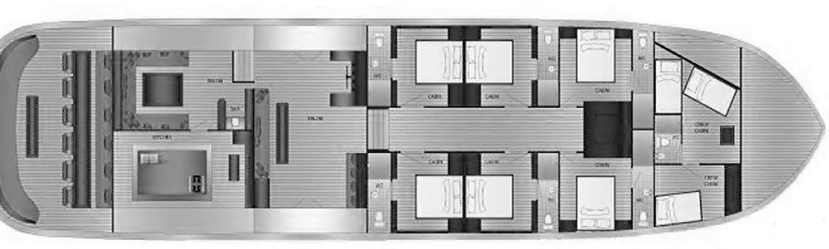 Our yacht are designed to offer not only visual beauty but also a combination of quality and comfort. Our deluxe yacht, 37 meters long, features 6 cabins and can accommodate up to 12 guests, providing a refined experience for your Blue Cruise vacation. Renovated in 2010, our yacht is equipped with every detail you may need during your trip and offers spacious and comfortable areas, surpassing its counterparts. You can enjoy your holiday in the waters of the Aegean and Mediterranean aboard our yacht, where our experienced and friendly 4-member crew is dedicated to ensuring your satisfaction. When weather and sea conditions permit, you can also experience the joy of sailing, and our yacht provides internet connectivity within Turkish territorial waters