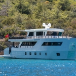 Suitable dining tables are available for breakfast, lunch, and dinner. The yacht’s kitchen is fully equipped with various appliances, such as an oven, refrigerator, beverage cooler, wine cooler, deep freezer, ice maker, coffee machine, filter coffee maker, and espresso machine.